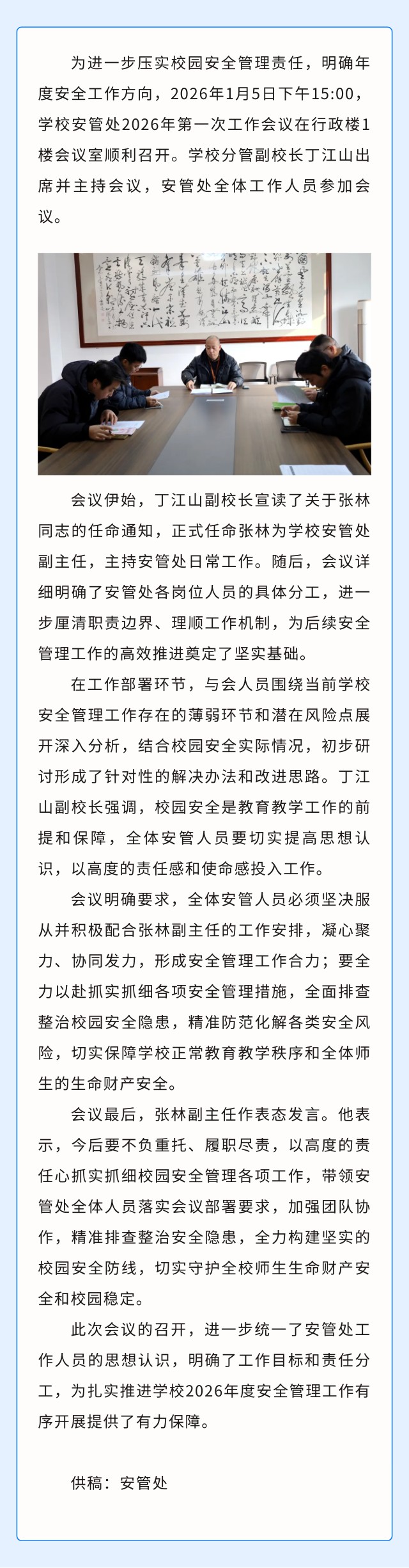聚焦校园安全!我校安管处 2026 年第一次工作会议召开