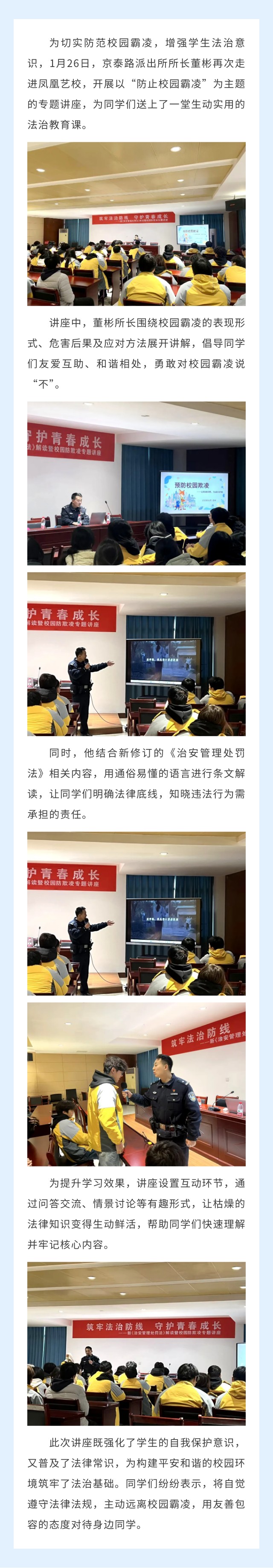 拒绝校园霸凌,法治护航成长丨京泰路派出所走进凤凰艺校开展专题讲座