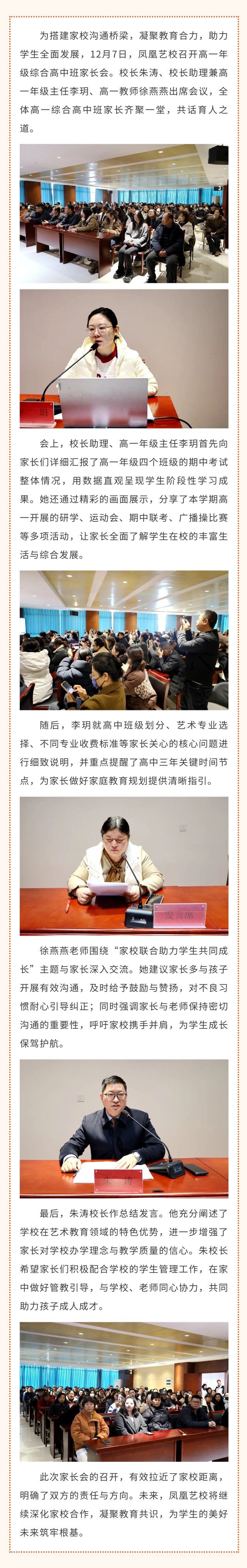 凤凰艺校召开高一年级综合高中班家长会