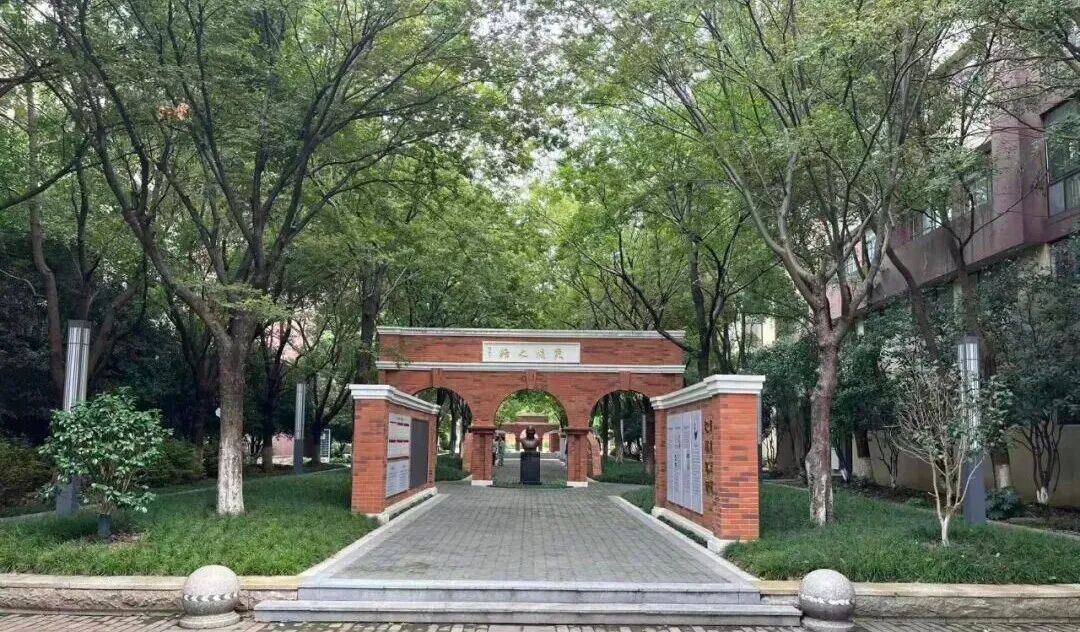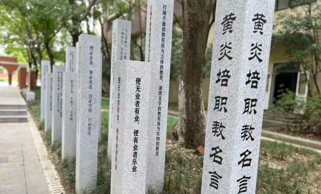 刚踏入校园,目光便被入口处的景致牢牢吸引:一条藤蔓缠绕的绿色长廊蜿蜒向前,阳光透过叶片缝隙洒下斑驳光影,仿佛在无声欢迎每一位来访者;长廊尽头,黄炎培先生的雕像静静矗立,目光坚毅而温和,仿佛在传递着“使无业者有业,有业者乐业” 的职教初心。顺着长廊往里走,便是学校的文化展示区 —— 从办学初期的老照片、校企合作的签约纪念牌,到学生在全国技能大赛中斩获的奖牌,再到毕业生入职知名企业的成长故事,每一块展板、每一件展品都在 “诉说” 着这所学校的职教坚守。我忽然明白,真正有底蕴的校园文化从不是刻意的 “装饰”,而是融入在每一处空间里的教育理念,是让学生在耳濡目染中理解 “技能立身、匠心筑梦” 的真谛。
