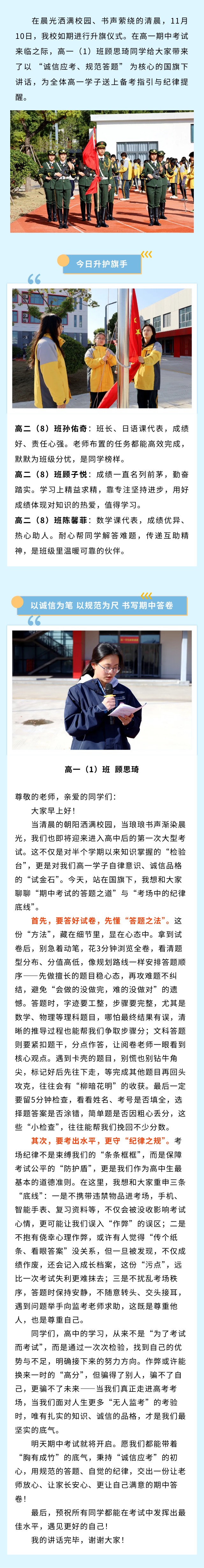 国旗下讲话丨以诚信为笔,以规范为尺,书写期中答卷