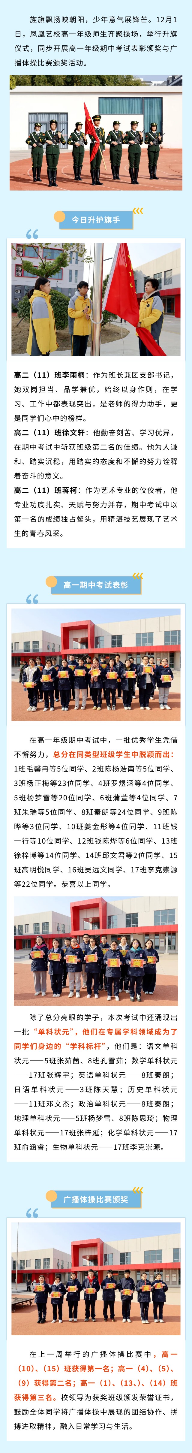 凤凰艺校举行升旗仪式暨高一期中考试表彰颁奖