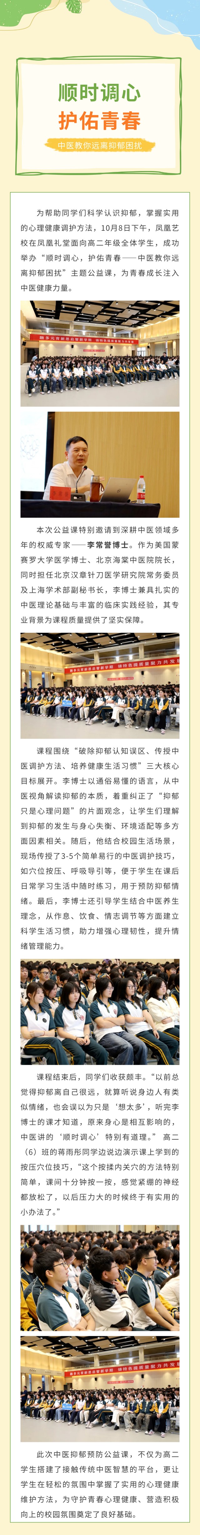 顺时调心,护佑青春丨凤凰艺校开展中医视角下学生抑郁预防公益课