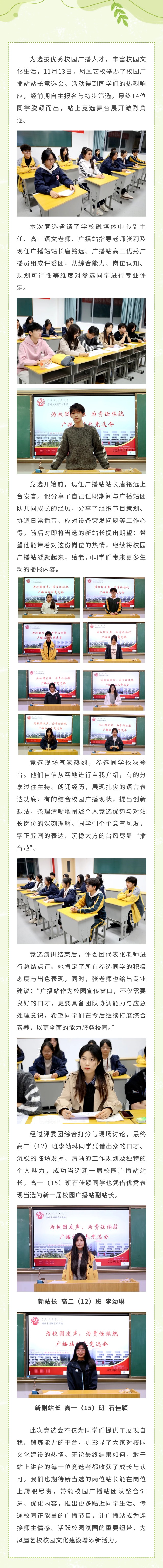 凤凰艺校校园广播站站长竞选落幕,新站长履职启航